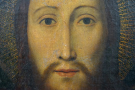Pittore della fine del XVIII secolo, Volto Santo - Mandylion, olio su tela, cm 41,8x33, entro cornice, (difetti)