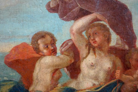 Pittore francese, attivo tra la fine del XVIII e il XIX secolo, Galatea, olio su tela, cm 28x34,5, entro cornice, (lievi difetti)