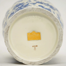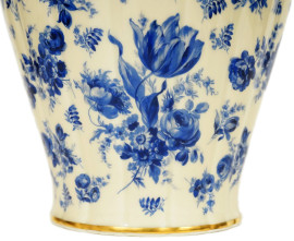 Potiche in porcellana Rosenthal, XX secolo, con decorazione bianca e blu a motivi floreali e finiture dorate, altezza cm 45