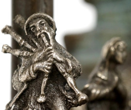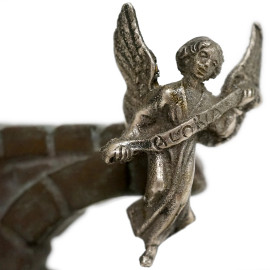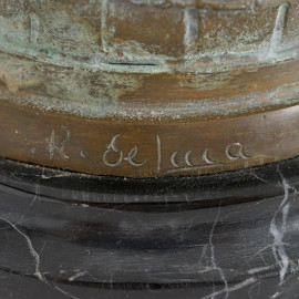 Presepe in bronzo e argento, base in marmo, firmato, altezza cm 16,5, diametro cm 13,5