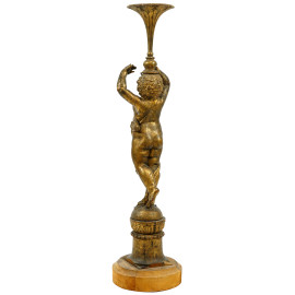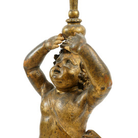 Putto in legno scolpito e dorato, XX secolo, altezza cm 100 (difetti e mancanze)