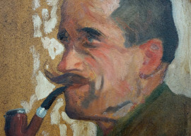 Ritratto d'uomo con pipa, olio su cartoncino, cm 32,4x30, entro cornice