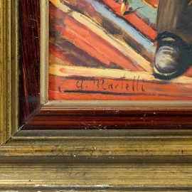 Ritratto d'uomo, olio su tavola, firmato in basso a sinistra, cm 47,5x20,2, entro cornice