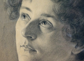 Ritratto femminile, disegno a matita su carta, firmato, cm 47x37, entro cornice