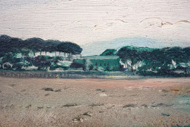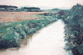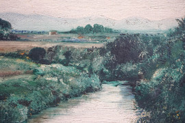 Rosario Pulvirenti (1899-1966), Paesaggio fluviale, olio su tela, firmato Pulvirenti, cm 59.5x93.2, entro cornice