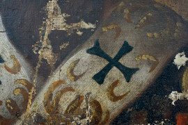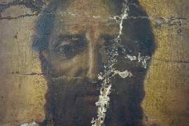 San Gregorio Nazianzeno, olio su tela applicata su tavola, XIX secolo, cm 56x28,5, (difetti, cadute di colore)