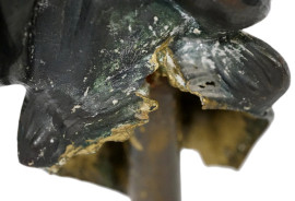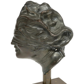 Scultura in bronzo brunito rappresentante la Fortuna, XX secolo, altezza cm 29 (difetti)