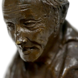 Scultura in bronzo brunito rappresentante un anziano bevitore, da Pasquale Fosca (1858-1929), base in legno, cm 31x23,5x23,5