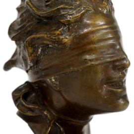 Scultura in bronzo dorata rappresentante la Fortuna, piedistallo in marmo, firmata Aurisicchio, altezza cm 30,5