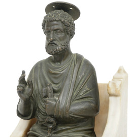 Scultura in bronzo montata su cattedra in marmo rappresentante San Pietro, da Arnolfo di Cambio (1240/1245 - 1302/1310), XIX secolo, cm 44x15,5x15,3 (difetti)