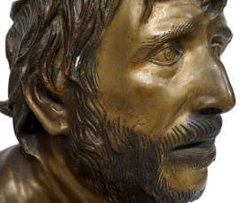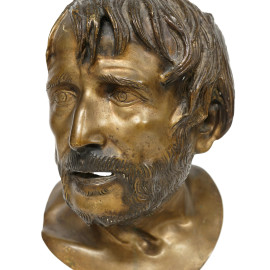 Scultura in bronzo raffigurante il busto di Seneca, altezza 43 (difetti)