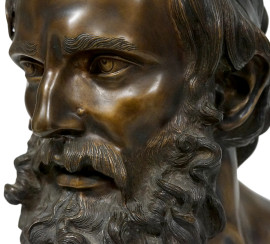 Scultura in bronzo rappresentante il busto di Filosofo, timbro della Fonderia Gemito Napoli, altezza cm 50
