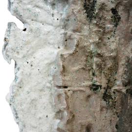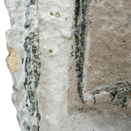 Scultura in ceramica smaltata, firmata sotto la base V. Galeone, base in metallo, cm 57x56x3,5, (difetti)