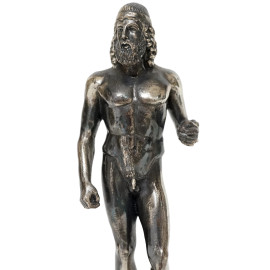 Sculture in argento rappresentanti i Bronzi di Riace, XX secolo, piedistalli in marmo, altezza max cm 15,5