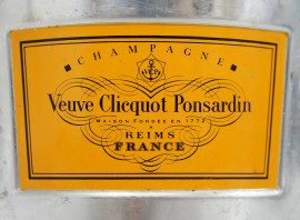 Secchiello portaghiaccio da champagne in alluminio anni '70, Veuve Cliquot Ponsardin, altezza cm 21, diametro cm 19,5