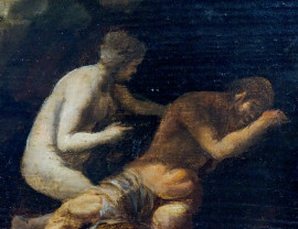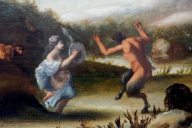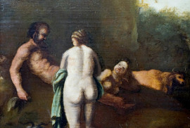 L'opera esposta replica, con delle varianti, il dipinto conservato alla Royal Collection eseguito da Poelenburgh tra il 1624 e il 1627. Altre due versione sono state esitate alla Finarte di Milano il 17 Dicembre 2009 e il 30 Marzo 2010.