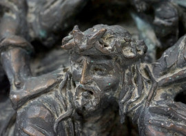 Via Crucis, placca in bronzo ad altorilievo, firmato e datato, cm h 40x48 circa