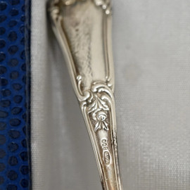 Servizio da 12 cucchiaini in argento con manico cesellato, lunghezza cm 11,5, entro scatola, peso gr. 140