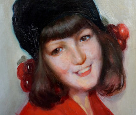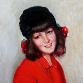 Cappottino rosso (la figlia del pittore), olio su tela, cm 84x62, entro cornice.
