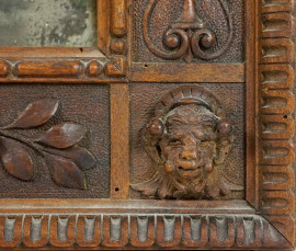 Specchiera in legno intagliato in stile rinascimentale, inizio XX secolo, cm 56,7x40,3, (difetti)
