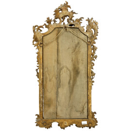 Specchiera Luigi XV, XVIII secolo, in legno intagliato e dorato, ingombro cm 127x68, (difetti)