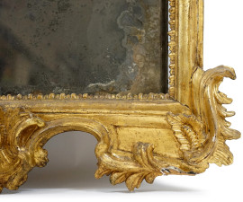 con cornice di forma sagomata scolpita a motivi rocaille, fiori e foglie.