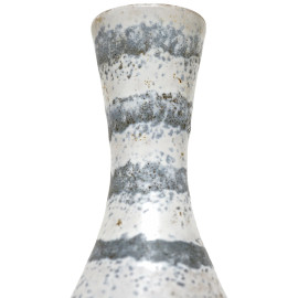 Vasetto in ceramica bianca e grigia con decori circolari, XX secolo, altezza cm 20,5 (difetti)