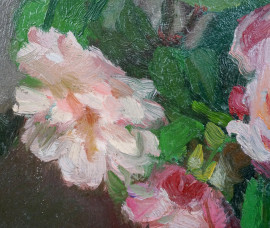 Vaso con fiori, olio su tavola, fine XIX secolo, cm 46x35, entro cornice
