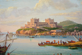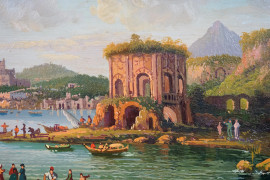 Veduta di Baia, olio su tavoletta, firmato in basso a sinistra Enrico Capuano, cm 12,4x24 (lievi cadute di colore)