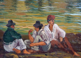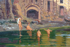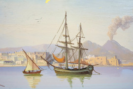 Veduta di Napoli con Palazzo Donn'Anna, olio su tavoletta, firmato in basso a sinistra Enrico Capuano, cm 18,3x28,1