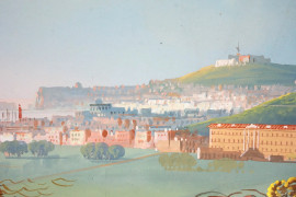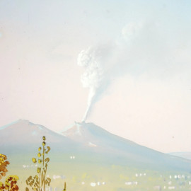 Veduta di Napoli da Capodimonte, gouache su carta, firmato, cm 37x50, entro cornice