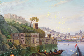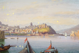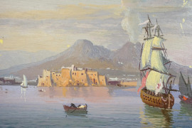 Veduta di Napoli, olio su tavoletta, firmato in basso a destra Enrico Capuano, cm 12,4x24 (lievi cadute di colore)