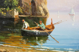 Veduta di Posillipo, olio su tavoletta, firmato in basso a sinistra Enrico Capuano, cm 14,4x23,8 (lievi cadute di colore)