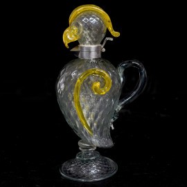 Versatoio in vetro di Murano a foggia di pappagallo, design Flavio Poli per Seguso Vetri d'Arte, vanni '60, altezza cm 27