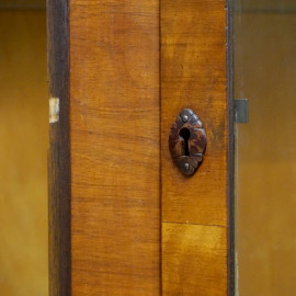 Vetriana a due sportelli, in legno impiallacciato, XX secolo, cm h 124,5x100x40, (difetti)