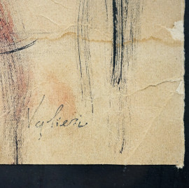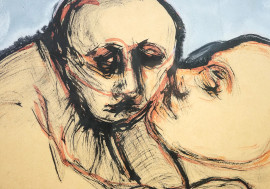 Abbraccio, tecnica mista su carta, firmato, cm 35x45, entro cornice