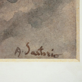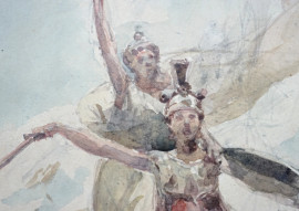 Allegoria della Vittoria, bozzetto ad acquerello su carta, firmato e datato 1910, cm 27x19, entro cornice