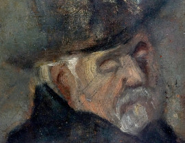 Anonimo, sec. XIX, bozzetto di testa virile con cappello, olio su tavoletta, cm 22x13, entro cornice