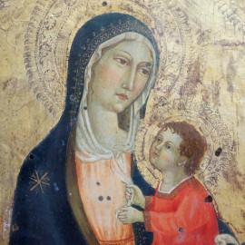 Anonimo toscano del XIX-XX secolo, Madonna con Bambino, tempera su tavola, cm 33,5x22, entro cornice