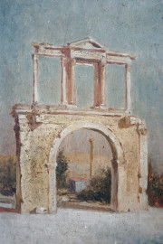Arco di Adriano ad Atene, olio su tavola, firmato e datato in basso a destra 15-IX-33 / Augusto Orlandi, cm 43.3x29, entro cornice