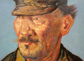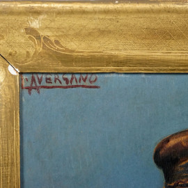 Ritratto di uomo, olio su compensato, firmato in alto a sinistra, cm 50x40, entro cornice