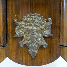Bonheur du Jour Napoleone III con intarsi alla maniera Boulle a finta tartaruga, fregi e guarnizioni in bronzo dorato e ottone, due cassetti e due sportelli, poggiante su quattro gambe mosse, XIX-XX secolo, cm 136x78x53