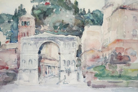Arco di Settimio Severo e Velabro, acquerello su carta, cm 24x34, entro cornice