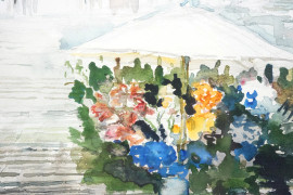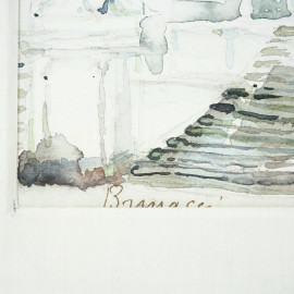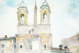 Trinità dei Monti, acquerello su cartoncino, cm 38x32, firmato in basso a sinistra, entro cornice