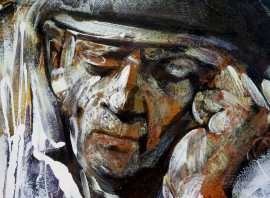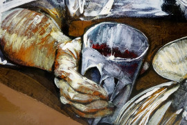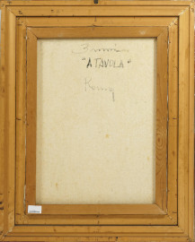 Bruno Bruni, A tavola, olio su tela, cm 80x60, firmato in basso a sinistra. Retro: firmato, titolato e iscritto "Roma". Entro cornice.