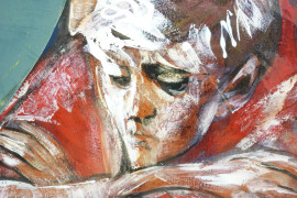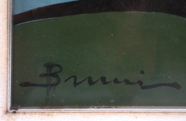 Bruno Bruni, Giocatori di scacchi, olio su tela, cm 80x60, firmato in basso a sinistra. Retro: firmato, titolato e iscritto "Roma". Entro cornice.
