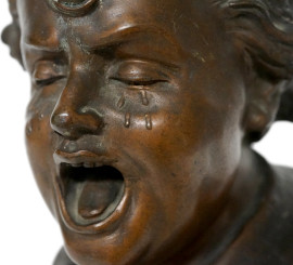 Busto di bambino piangente, bronzo su base in marmo, sec. XX., tot. Cm 31,5x13,5x 15,5