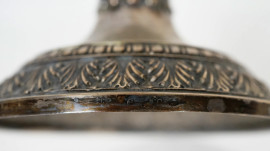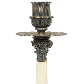 Candeliere in argento cesellato con fusto scanalato, XX secolo, peso lordo gr. 527, altezza cm 31