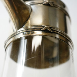 Caraffa in vetro con manico e coperchio in argento, sec. XX, cm 26,5x16