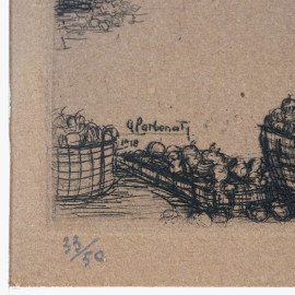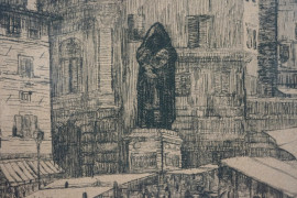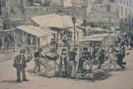 Campo de' Fiori, acquaforte, firmata e datata a matita in basso a destra A. Carbonati 1918, esemplare n. 33/50, misure comprese passepartout cm 37x52, entro cornice